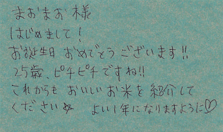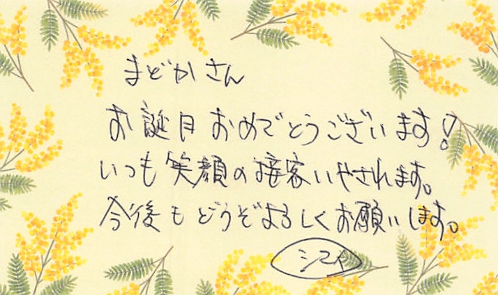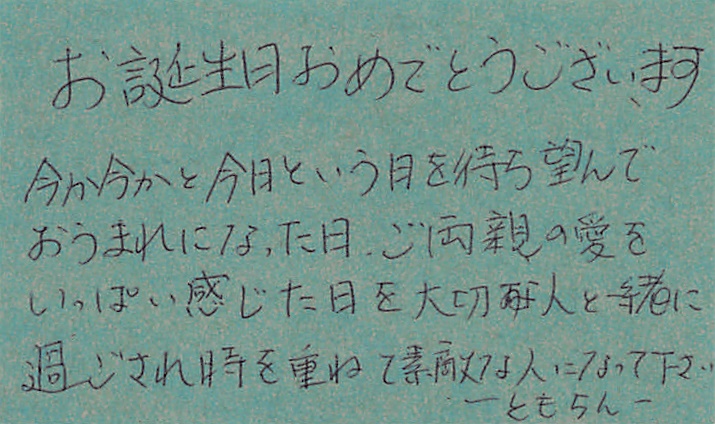 お店でメッセージカードを書いてくださると