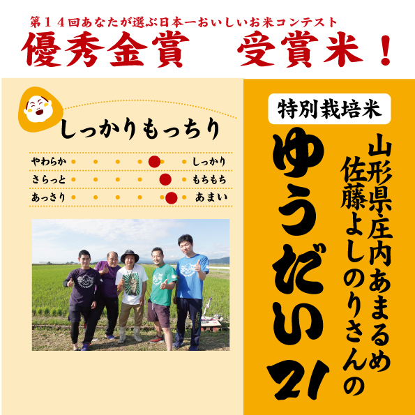いづよねと一番仲良しな産地、山形県あまるめの《佐藤吉法さん》が、「第14回あなたが選ぶ日本一おいしい米コンテストのプレミアム部門」で優秀金賞を受賞されました!!