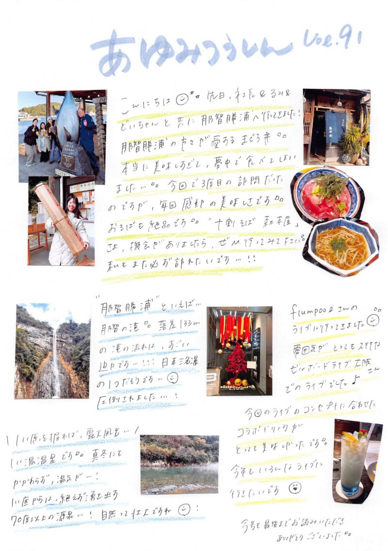 【あゆみつうしん vol.91】那智勝浦の自然と、flumpoolに酔いしれる