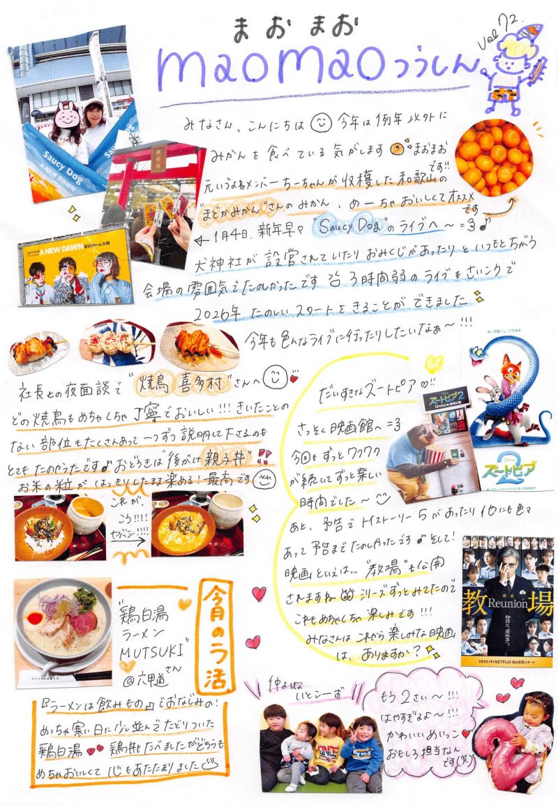 【maomaoつうしん vol.72】ライブに映画に「親子丼」!最高のスタート