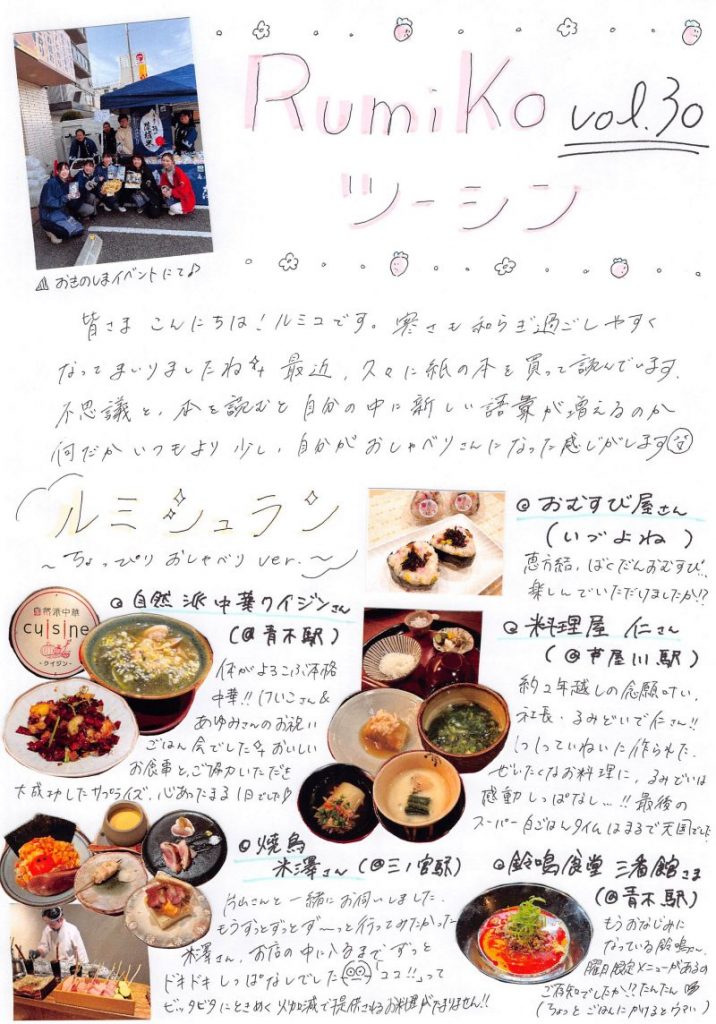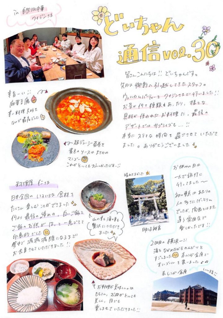 今月はスタッフの絆がより強くなった月でした!けいことどいちゃんのレターからは、新スタッフ・歩さんの「御影ウェルカムパーティー」の様子が届いています。
