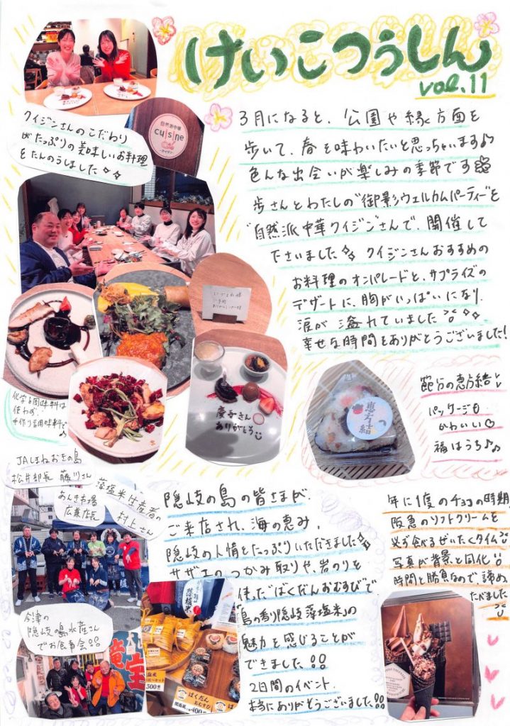 今月のいづよねは、新しい仲間の歓迎会や、島根県・隠岐の島の皆さまとの交流イベントなど、お米を通じた「絆」がさらに深まる一ヶ月でした。スタッフそれぞれの春の様子をお楽しみください!