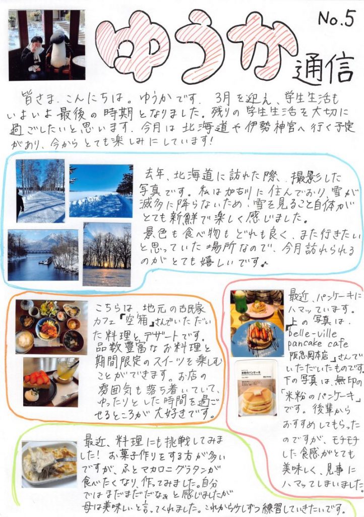 【ゆうか通信 No.5】卒業目前!学生生活最後の旅とパンケーキ三昧